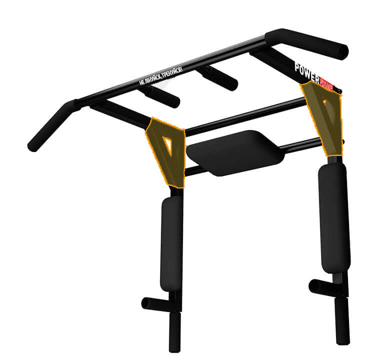 –прочное крепление с перекладиной оптимальной длины (110 см); –мягкие неопреновые ручки на каждом варианте подтягивания; – турник с ровной перекладиной для подтягиваний обычным и широким хватом; – брусьями c мягкими подлокотниками; –тренировка бицепса и трапеции на обычном хвате; – комплекс для упражнений на пресс, боковые мышцы.