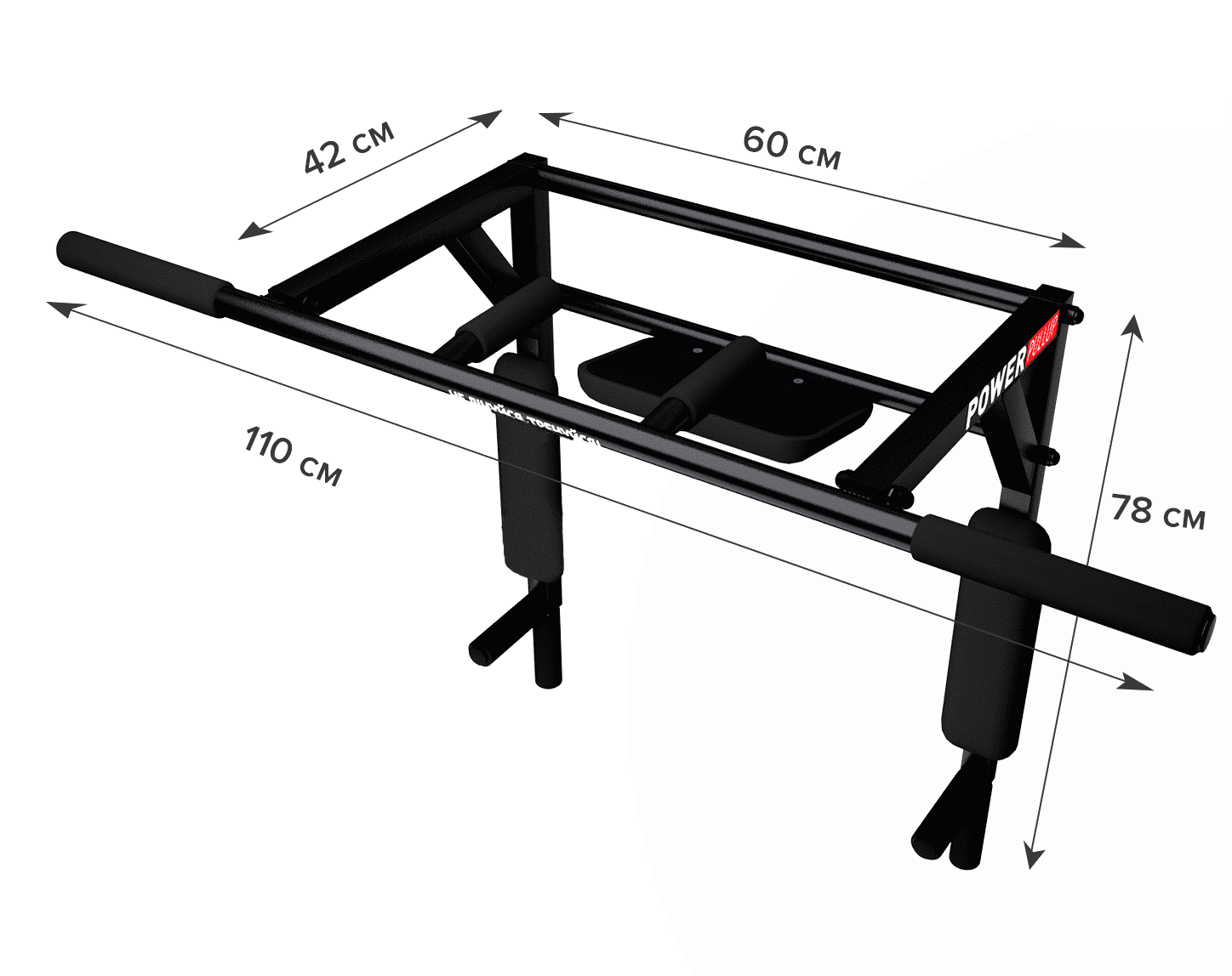 –Длина перекладины 110 см; –Вылет от стены 42 см; –Ширина между креплениями 55 см; –Вынос брусьев от стены 76 см; –Вес 12 кг.